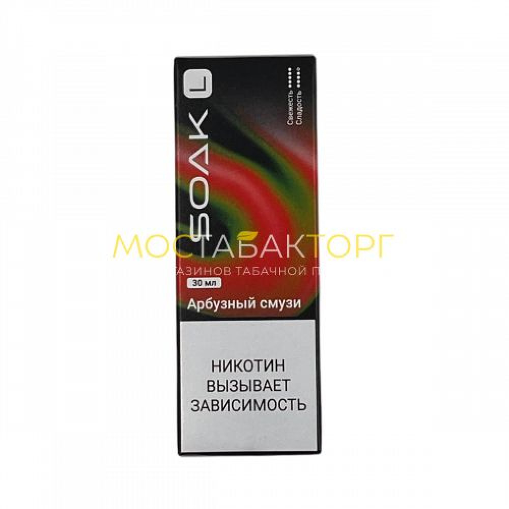 | Аромат/вкусАрбузный смузи | Баланс VG/PG50/50 | БрендSoak |